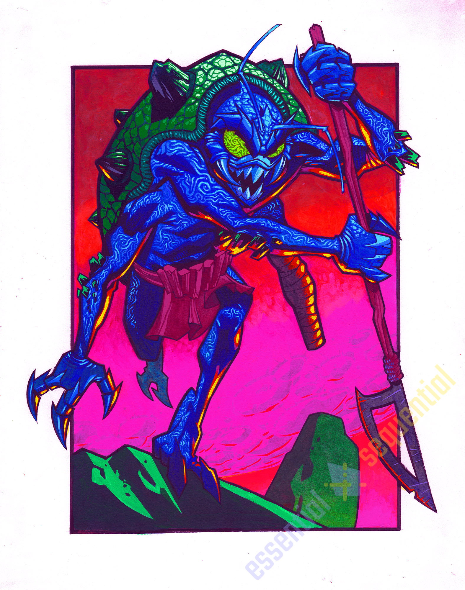This piece is an amazing display of Shawn’s incredible Painting technique and shape language! This illustration was Painted with acrylics and is completely archival
