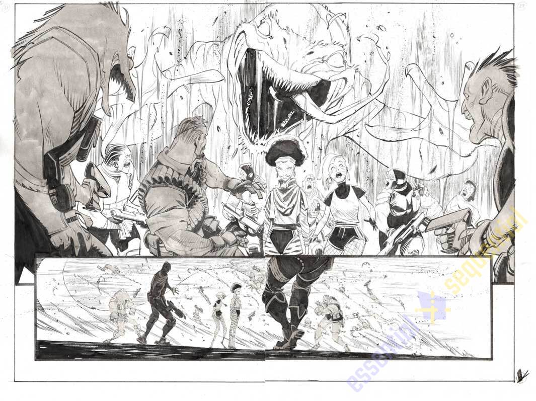 In the spectacular climax of the first volume of SPACE BANDITS, our heroes are called upon to save Viggo from the jaws of a monstrous, bloodthirsty princess. In this high-octane final issue, the girls must use their criminal cunning and combat skills to get out alive.